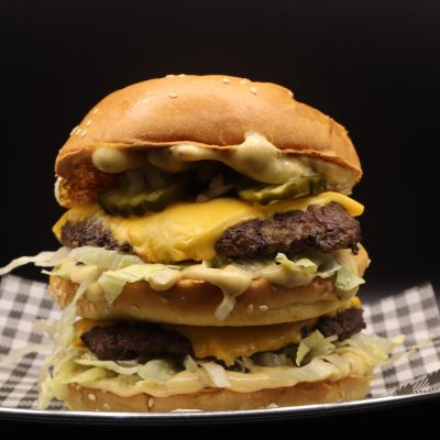Double beef, double cheese, bacon, hash brown, chipotle mayo and BBQ sauce.